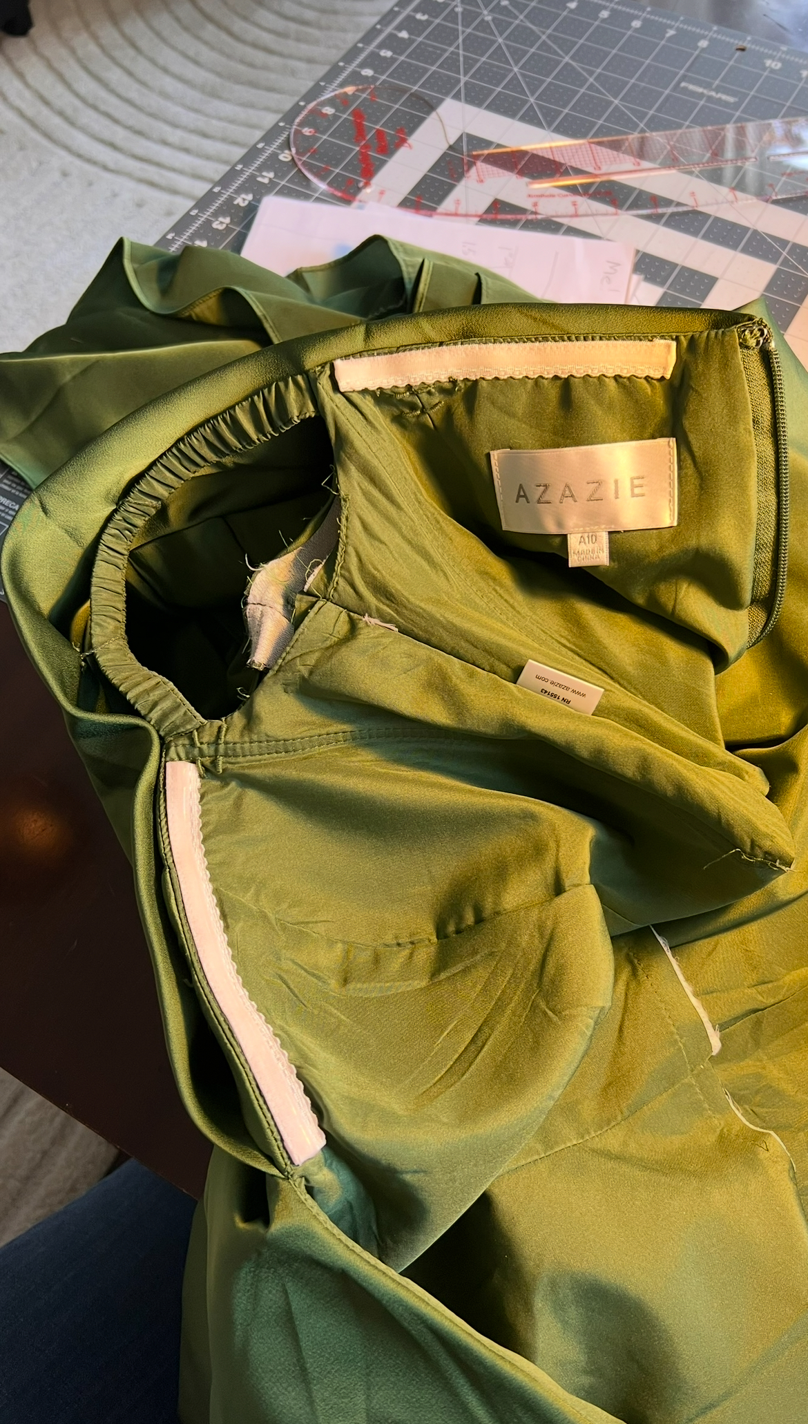 I don’t go for anything traditional, and this dress would be no exception. I looked for a dress online and with my daughters approval, I chose this beautiful green, asymmetrical gown. Nice right? Of course when I received it and tried it on, it needed some adjustments.